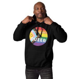 Embrace your identity with the Perfectly Queer Unisex Hoodie, a stylish and comfortable way to express your pride. Available in black, this hoodie features the bold “Perfectly Queer” graphic on the front, set against the vibrant Intersex Progress Pride Flag background. With the phrase “Let Me Be Perfectly Queer” displayed in white text, this hoodie celebrates inclusivity and proudly showcases your queerness.